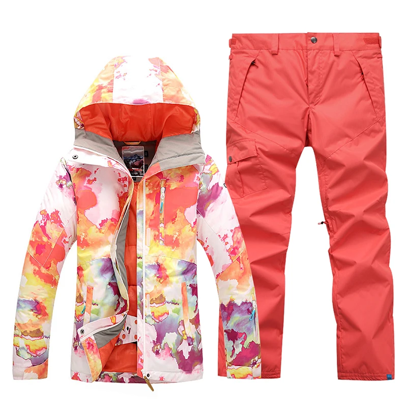HIGH QUALITY GsouSnow winter ladies camouflage suit windproof waterproof warm climbing suit charge suit orange c
