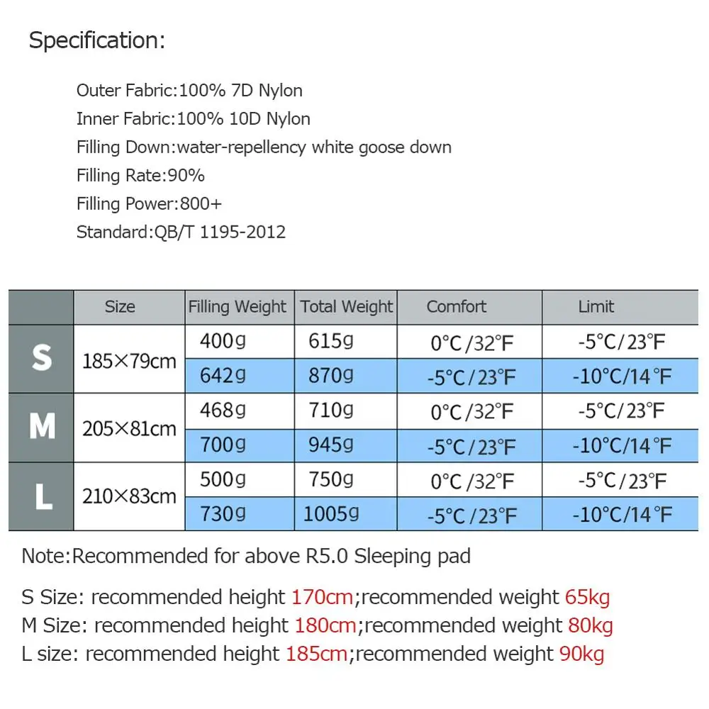 Ice Flame Winter 7D Nylon UL Ultralight 90% White Goose Down Mummy Sleeping Bag 800PF For Camping H
