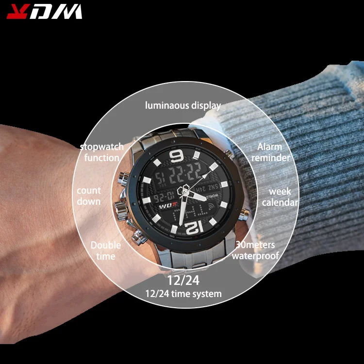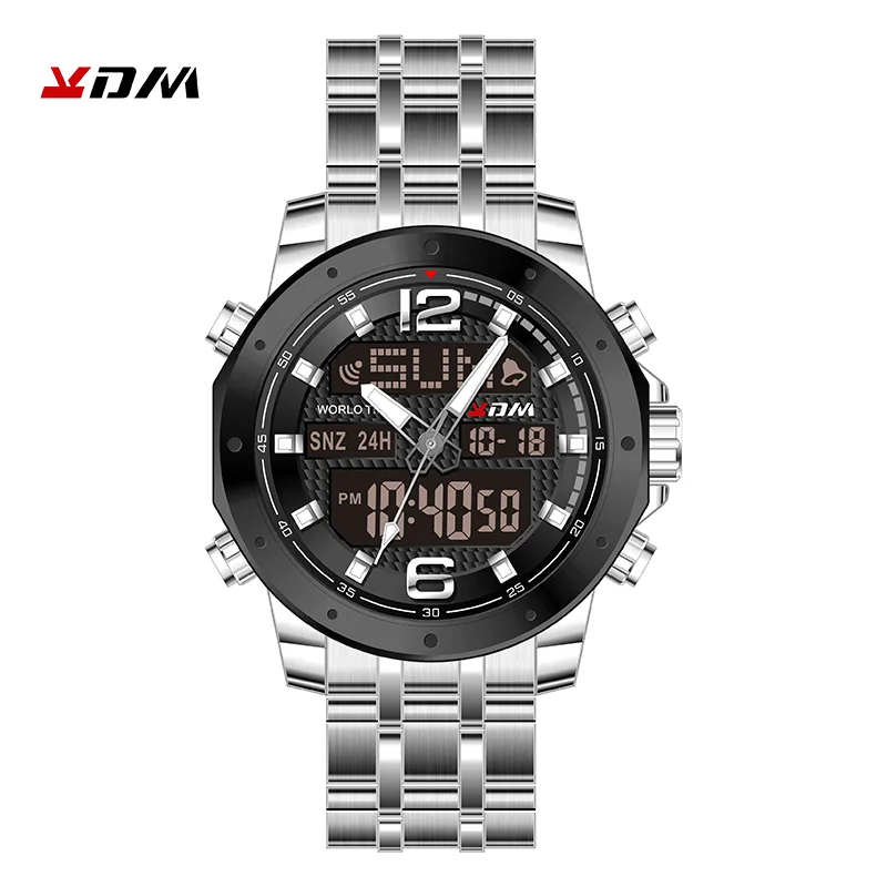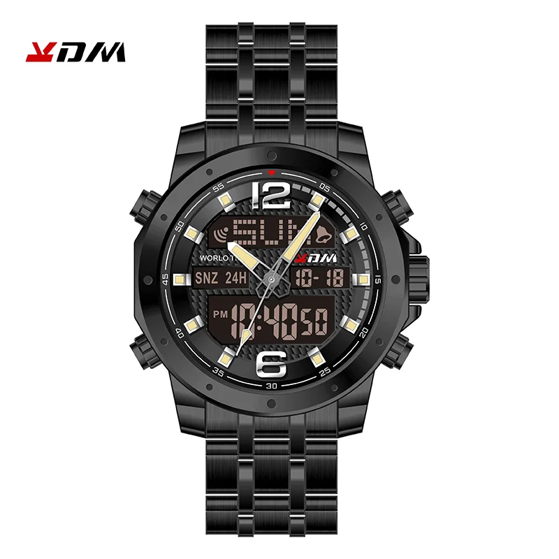 Hot Sale KDM Multi Function Men Wristatch Sports Running Hiking Outdoor Dual Display Steel Clasp Band Lumina