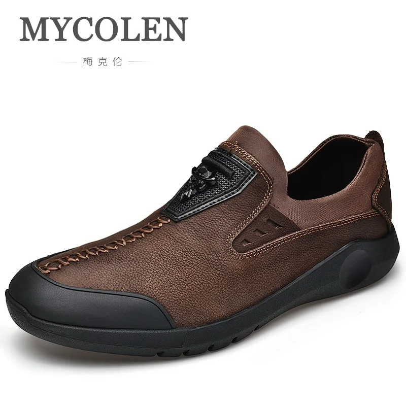 MYCOLEN Brand Quality Casual Leather Shoes Men Patchword Designers Hiking Shoes Leather Outdoor Wal