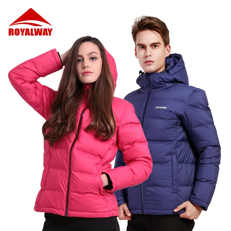 HIGH QUALITY ROYALWAY Outdoor Hiking Hooded Down Jackets Men&Women Winter Lovers Matching White Duck Down Jacket