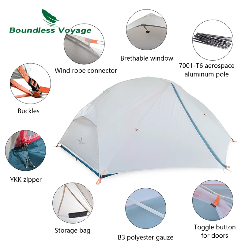 HIGH QUALITY Boundless Voyage Camping Tent Ultralight 2 Person Tent Waterproof 3 Season Double Layer Tent for Ba